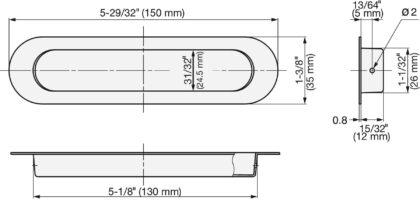 - HN-150SH ovale håndtakskopper i rustfritt stål har to sidemonteringshull (⌀2 mm) som ikke er synlige for brukeren