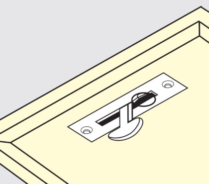 • En utskjæring som måler 66,7 x 19 mm og minst 36 mm dyp (H) skal lages på døren for montering (se monteringstegning for ytterligere detaljer)