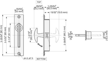 Sugatsune SUS304 sammenleggbart håndtak i rustfritt stål, ST-90 (90 mm), satengmatt. Teknisk tegning