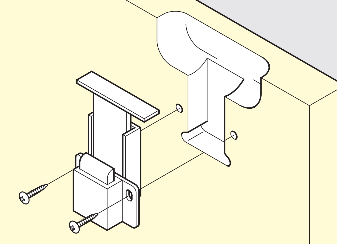- Festing gjøres ved hjelp av de seks skruene som er inkludert i leveringsomfanget (skruer med panhode, selvskruende (2 stk. 3,5 x 15 mm, 2 stk. 3,5 x 20 mm og 2 stk. 4,0 x 15 mm))